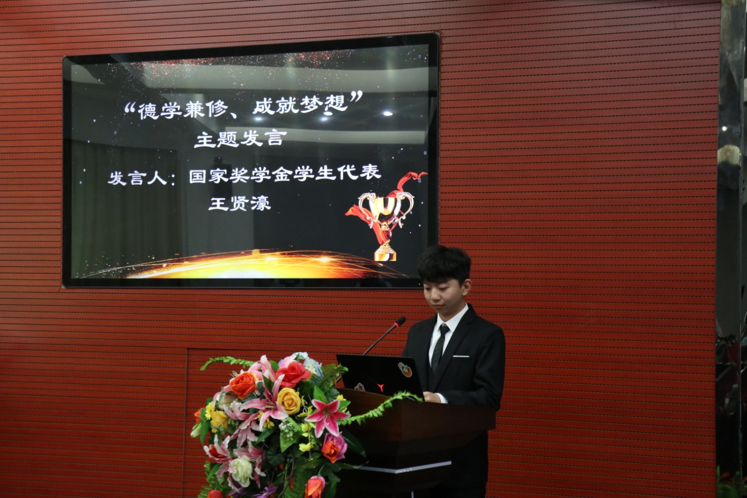 本次活动邀请了beat365国家奖学金获奖代表王贤濠同学以及国家励志奖学金获奖代表吴思艺同学进行发言,两位同学分别以“德学兼修、成就梦想”“励志成长、诚信感恩”为主题分享了他们的校园逐梦生活,以亲身经历鼓励师弟师妹们要珍惜在校时光,刻苦学习,不断锤炼,成就自我。