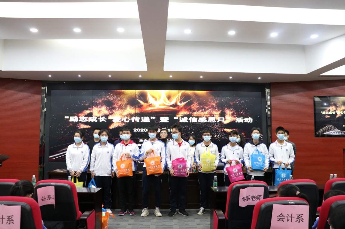 活动最后,老师们为在场的同学发放了爱心礼包,本次活动预计两校区共发放571份爱心礼包。此外,活动会场外还设置了感恩祝福语留言区及资助知识有奖竞答区。本次“励志成长  爱心传递”活动暨“诚信感恩月”启动仪式在广大师生的踊跃参与下圆满取得成功。(学生处学生资助管理中心)