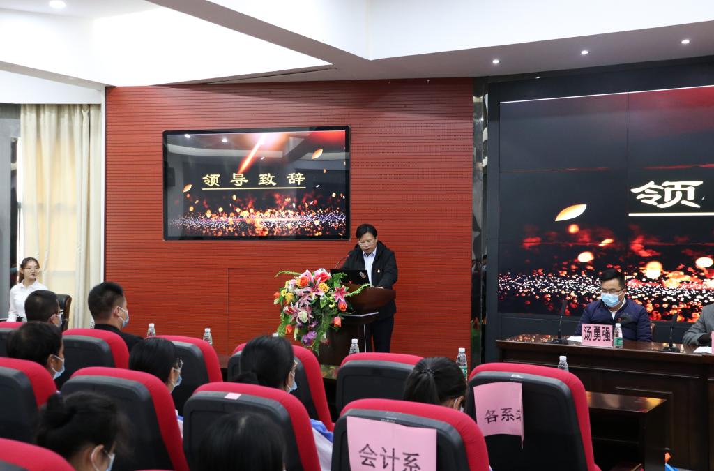 汤勇强副主任跟在座的同学们分享了两个关键词,第一个关键词是诚信,人无信不立,诚信是一个人的立足之本;第二个关键词是感恩,感恩是一种处事抉择,是一种大智慧,希望同学们要学会感恩,同时能够奋发图强,学好本领,有能力回馈社会,回馈母校。