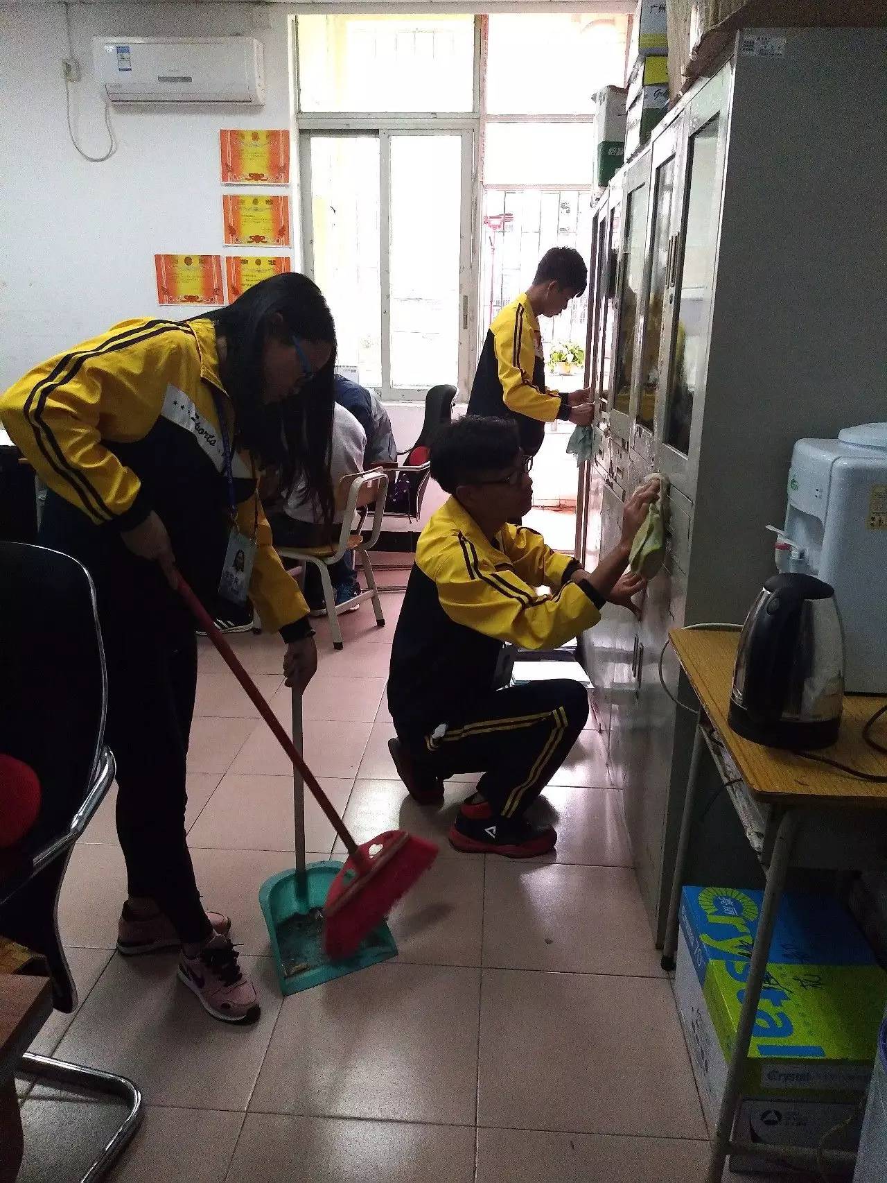 下午16点,志愿者们拿着打扫工具到达指定地点,几人一组,分工协作。有的为老师整理文件、物品;有的拖地扫地;有的擦玻璃……在接近两个小时的努力下,各自负责的区域焕然一新。