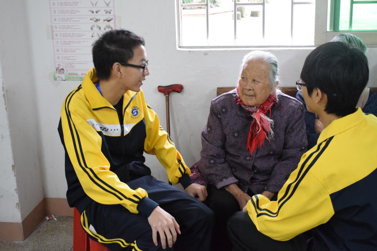 早上7点20分,志愿者们早早地出发了。一走进敬老院的大门,老人们已经在院子里面坐好,欢迎我们的志愿者。志愿者们为老人精心准备了一些水果、实用的小礼品和精彩的文艺节目,敬老院里顿时萦绕着欢声笑语。在互动环节,老人们十分开心地参与其中,两位老爷爷一时兴起分别上台唱了首《义勇军进行曲》和《歌唱祖国》,那依旧洪亮的声音,透露着他们内心对祖国的热爱之情,赢得了全场热烈的掌声。