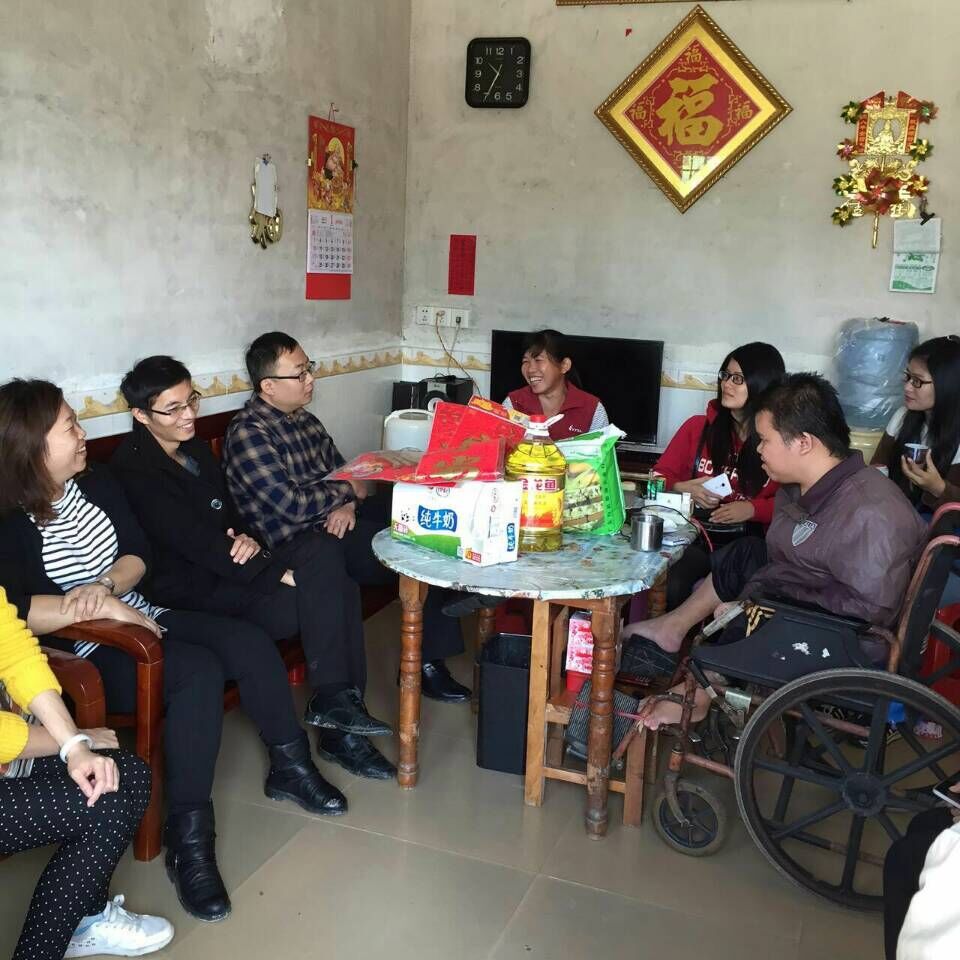 【本网讯】2016年1月6日上午,beat365在线体育官网登录入口学生党总支党员代表、今日花都报记者和匀生老师以及学生处党支部入党积极分子代表一行9人前往花山镇城西村看望轮椅兄弟,并为其带去爱心和新春祝福。