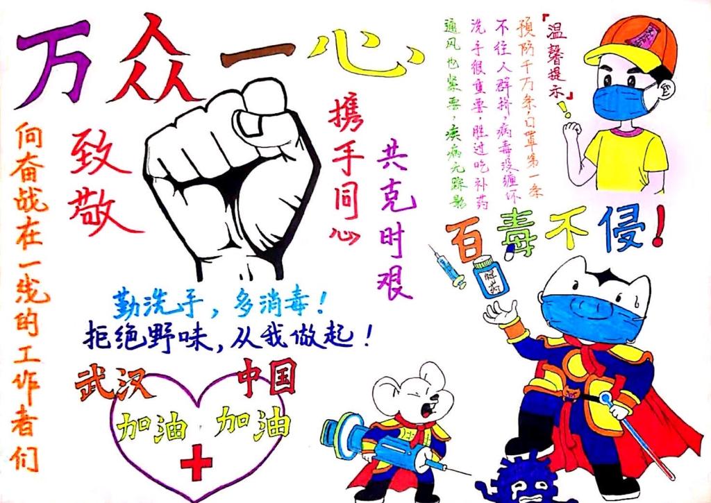 同时,支部党员同志们积极响应学院“祝福武汉”作品征集,投稿文艺作品23件,发动本年级非党员学生提交作品252件。支部书记钟晓燕同志总结道:“作品表达了对武汉人民抗击疫情的暖心祝福、对医疗界及社会爱心人士的由衷敬佩之情。”