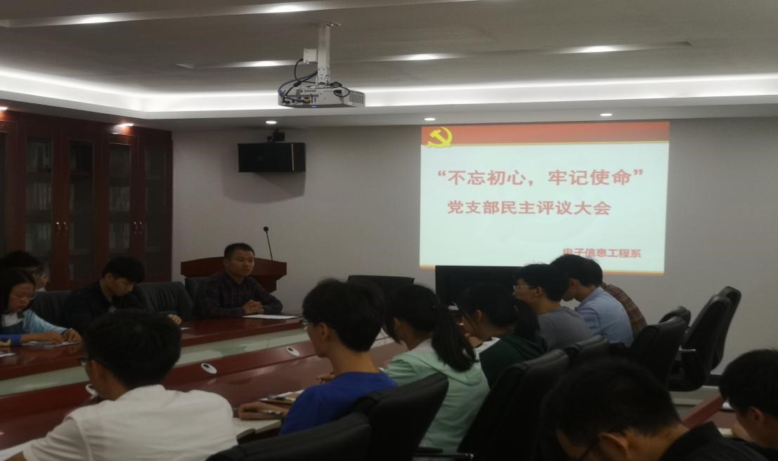 本网讯】12月12日下午,电子信息工程系“不忘初心、牢记使命,党支部民主评议大会“ 主题教育专题党课在系部楼412举行。电子信息工程系钟伟老师、袁畅老师,党员学生、预备党员29人等参加学习。学生支部书记钟伟老师主持。