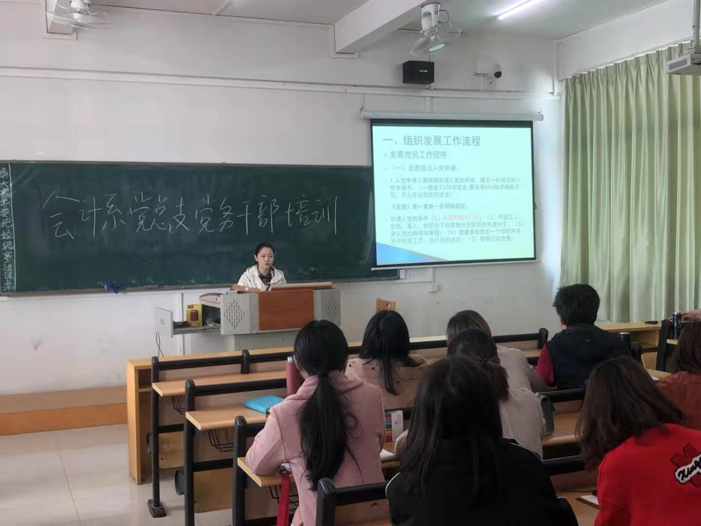 【本网讯】12月4日上午,会计系党总支在第二教学大楼召开党务工作规范化培训会。会计系党总支书记全桂艳同志、党总支副书记黄国威同志、宣传委员陈雍同志、组织委员王萌同志以及各党支部支部委员参加培训。培训由黄国威同志主持。