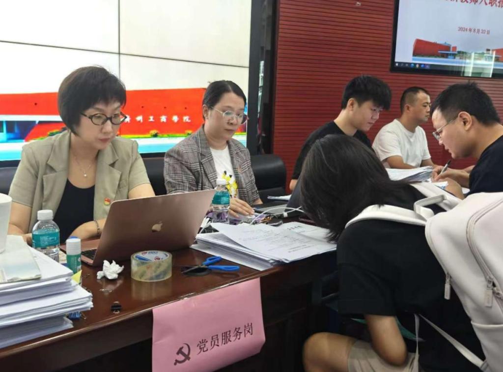 2024年8月22日,学校在三水校区办公楼322设立报到点,机关一支部专设党员服务岗,由人事处联合广商教育研究院、财务处等各单位做好统筹协调工作,各教学部门派出骨干教师团队支援新教师报到现场,为新教职工提供一站式报到服务,携手为新教师打造了一个温馨、和谐的工作、生活环境。