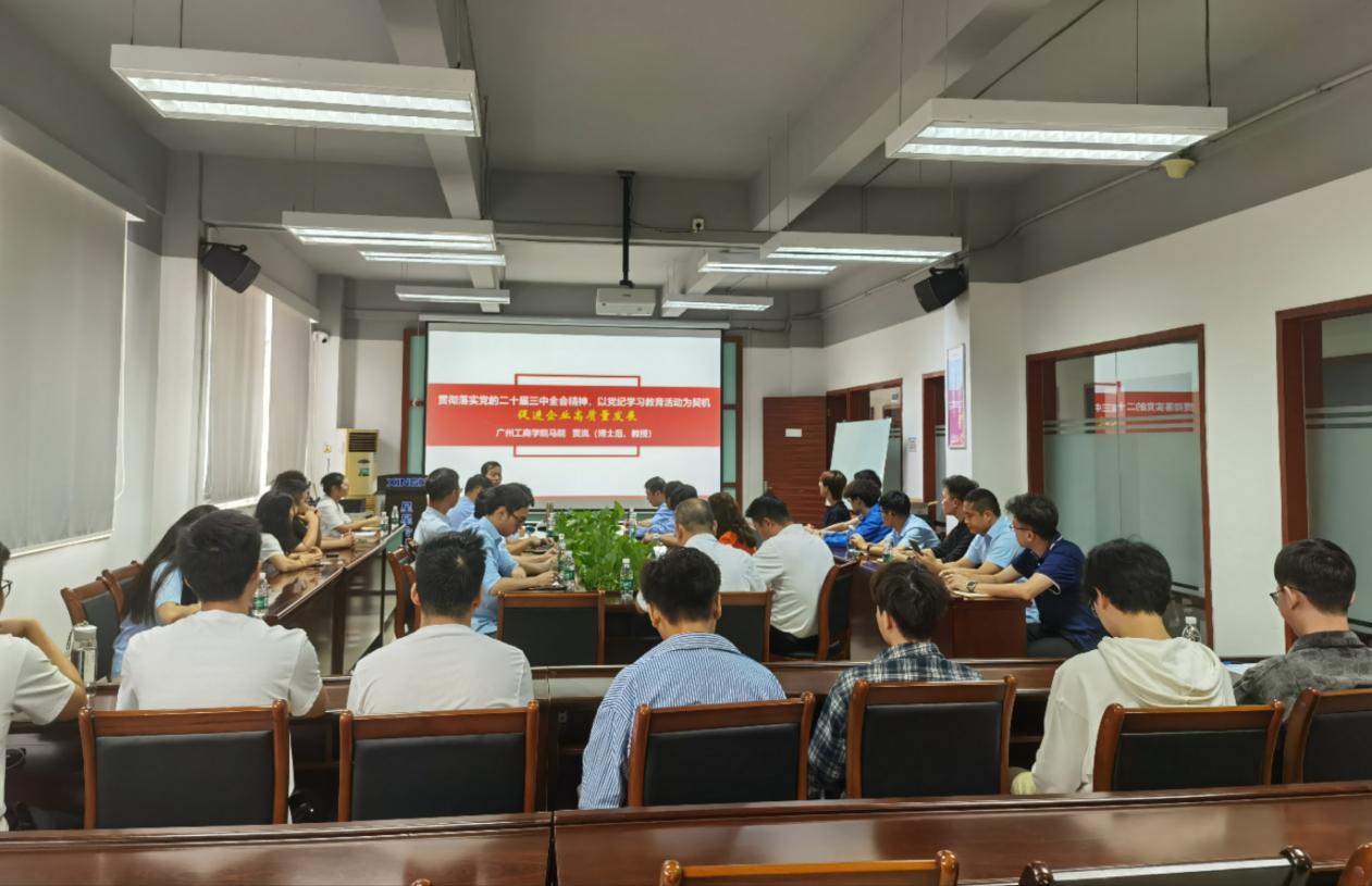 【本网讯】为深入学习党的二十届三中全会精神,学习贯彻习近平新时代中国特色社会主义思想,引导企业以党的理论学习为引擎,以深化改革激发创新活力,以新质生产力推动企业高质量发展,beat365在线体育官网登录入口马克思主义学院党总支与佛高区三水园产业社区党委党建共建举办了学习贯彻党的二十届三中全会精神专题培训班。马克思主义学院宣讲团的专家贾岚教授、博士后于9月24日走进佛山市三水区乐平镇广东星星制冷设备有限公司,以《贯彻落实党的二十届三中全会精神,以党纪学习教育为契机,促进企业高质量发展》为主题作专题宣讲。