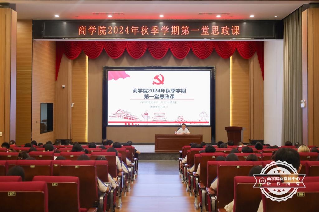 赓续红色血脉,传承红色基因一直是我院教书育人,教人成材的目的与根本。为使学生更好地学习领悟党的战略宏图,贯彻党的领导方针,提升思想高度,商学院党委书记、院长林波教授于2024年10月21日晚上19:00-20:30在图书馆414报告厅以解读新质生产力为主线,徐徐展开商学院全体党委干部、本期党课入党积极分子、发展对象学员们新学期的第一堂思政课。