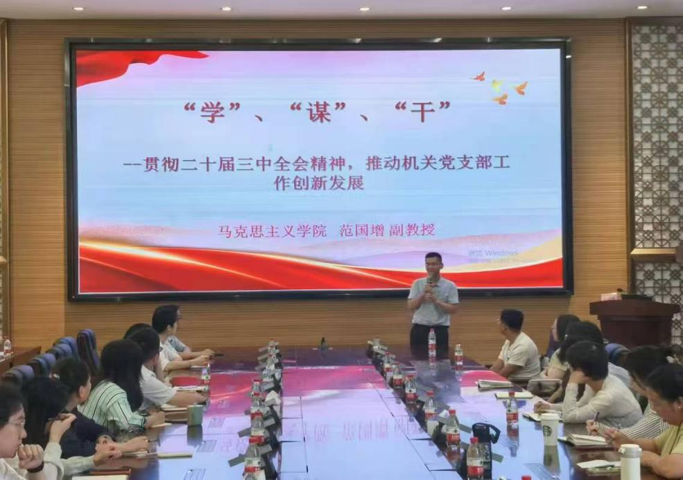 在学校,马院宣讲团先后与中共beat365在线体育官网登录入口机关委员会、机关一党支部、机关二党支部、机关三党支部、机关四党支部、机关五党支部、机关六党支部协同开展专题培训班。期间,马院宣讲团专家范国增副教授作《“学”“谋”“干”——学习贯彻党的二十届三中全会精神,推动机关党支部工作创新发展》专题宣讲,朱青山副教授作《深刻领会党的二十届三中全会精神 以新质生产力推动高校数字化转型》讲座,贾岚教授作《学习贯彻党的二十届三中全会精神 加速推进中国式现代化在广东的生动实践》主题宣讲,推动全会精神深入人心、落地生根,助力机关党支部工作创新发展。