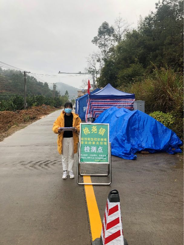 从大年初七开始,她就接到上级通知,要尽快安排每个村设防疫点。她匆匆赶回工作岗位,被安排在和福建交界的桃尧镇桃源村,负责拦截过往车辆,对行人进行体温测量,询问是否有武汉、湖北居住史,是否有咳嗽、发热,是否外来务工人员返乡、是否有过串门、聚餐等事项。