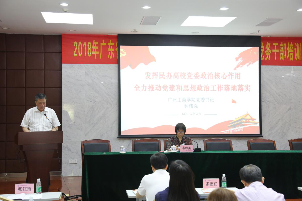 【本网讯】6月11日上午,全省民办高校党务干部培训班在广州城建职业学院举行,广东省委教育工委组织处副处长叶祝秋出席开班仪式并讲话。我院党委书记钟伟强、党办负责人、基层党组织负责人代表与来自全省42所民办高校的党务干部参加了培训班开班仪式,钟书记在培训班上分享了我院党建工作优秀经验。
