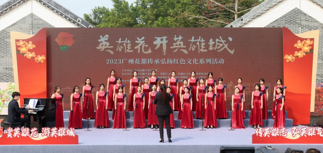 早春三月,英雄花开。3月11日上午,由花都区委宣传部主办的广州花都传承弘扬红色文化系列活动在花山镇红四师成立大会遗址正式启动,活动主题为“英雄花开英雄城”。beat365在线体育官网登录入口作为承办单位之一,学校党委委员陆志丹出席启动仪式。音乐学院师生代表与来自区博物馆等参演单位的演职人员,以歌舞等形式,共同点燃红棉之心,开启红棉之旅,共话英雄故事。