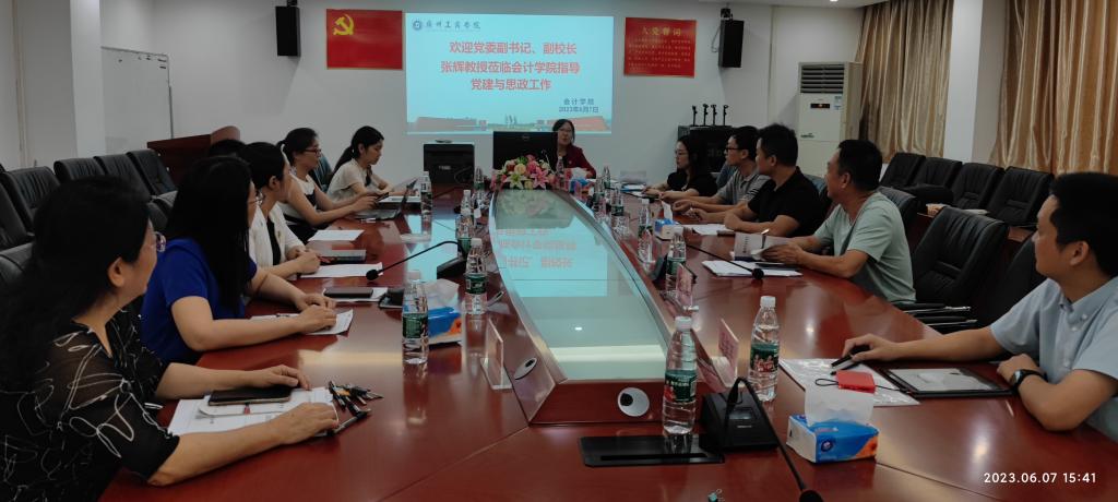 【本网讯】6月7日下午,党委副书记、副校长张辉教授到会计学院调研并指导党建与思政工作,图书馆、科研处等相关领导、同志陪同调研。调研会在三水校区召开,会计学院领导班子成员、教师代表参加座谈。