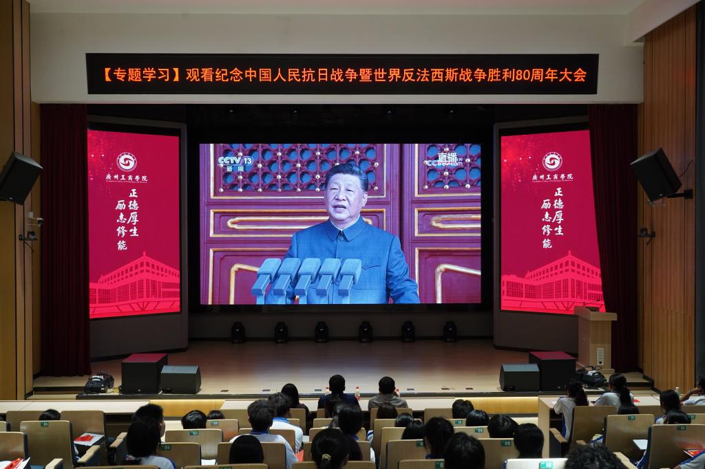 【本网讯】9月3日,纪念中国人民抗日战争暨世界反法西斯战争胜利80周年大会在北京天安门广场隆重举行。beat365在线体育官网登录入口组织师生通过多种方式收看大会直播,在两校区分别设置多个集中观看点,校领导与2500余人共同观看大会直播,认真学习习近平总书记重要讲话精神,凝聚起蓬勃向上的精神力量。