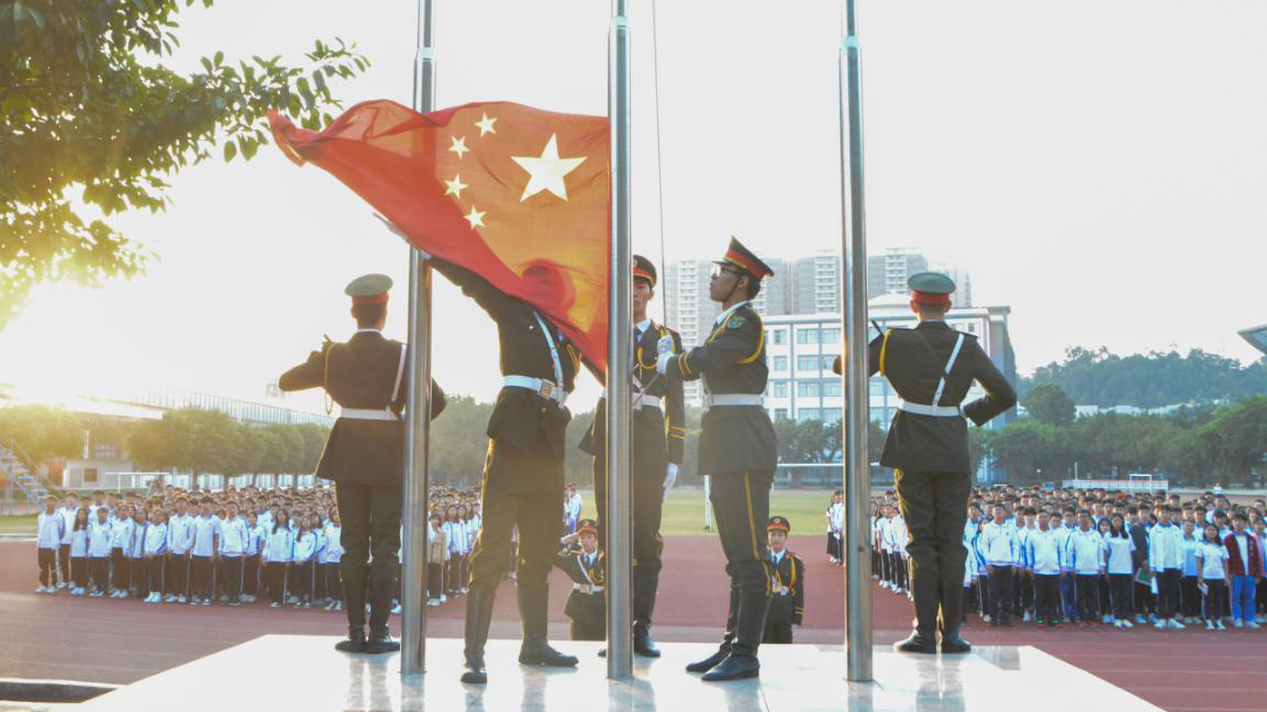 国旗护卫队整装待发,于7点整准时出旗,他们步履铿锵,全体同学奏唱国歌,行注目礼。随后,院团委办公室干事钟晓彤同学作了发言。她讲到,优秀的个人离不开先进的集体,作为新时代的beat365在线体育官网登录入口学子,我们应该坚持贯彻学院邝邦洪院长提出的“以德为行 以学为上”教育理念,积极践行“五进”教育实践活动,不忘初心、牢记使命。我们还要坚定理想信念,追逐青春梦想;锤炼高尚品格,奠定人生基础;练就过硬本领,夯实专业素质,为中国特色社会主义现代化建设贡献自己的力量。