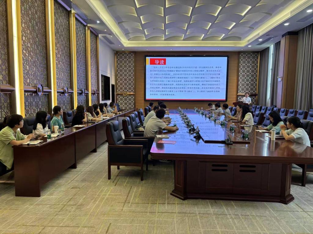 【本网讯】为把深入贯彻中央八项规定精神学习教育同贯彻落实党中央重大决策部署结合起来,同推进学校作风建设结合起来,2025年6月5日,机关四党支部与机关五党支部联合开展“扎实开展中央八项规定精神学习教育,推动高校机关作风持续好转”的专题讲座,由马克思主义学院贾岚教授作主讲,机关党委陈豫岚书记列席,机关四支部和机关五支部全体党员、发展对象及入党积极分子参加,主题讲座由机关四支部书记周声宇主持。