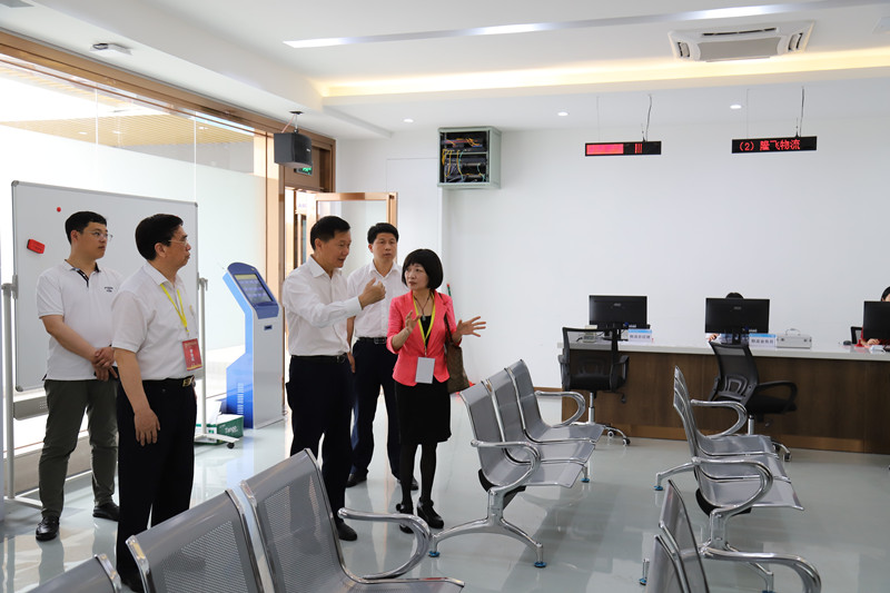 (图为学院领导陪同何宪教授参观新商科实践中心)