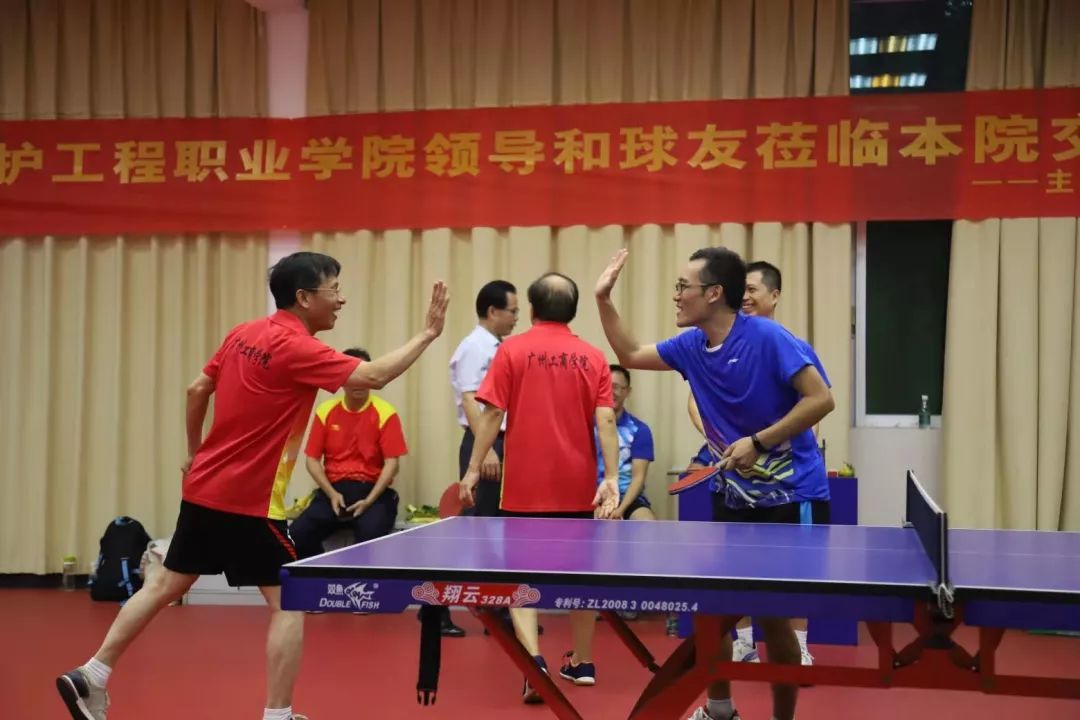 下午四时,我院教职工乒协与广东环境保护工程职业学院教职工乒协交流赛在三水校区体育馆乒乓球室举行,经过近三个小时的紧张激烈的比拼,我院教职工乒协取得胜利。