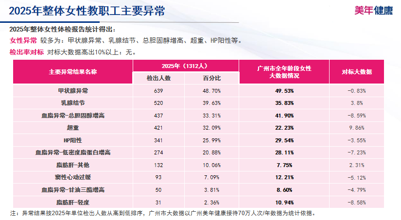 女性教职工体检人数为1312人。