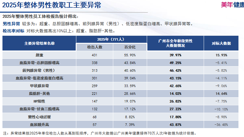 男性教职工体检人数为771人。