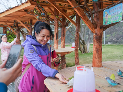 人间最美三月天,春花烂漫展新颜。在霓裳园中,三角梅在风中悄然绽放;在绿树碧草之间美不胜收,似乎在迎接女教职工们的到来。在莺歌燕舞园,她们慢下脚步,与可爱的虎皮鹦鹉进行互动。坐着小火车,随手抓一束路过的风,便是春天的浪漫。与花相伴,令人感到心旷神怡。女教职工们喜笑颜开。