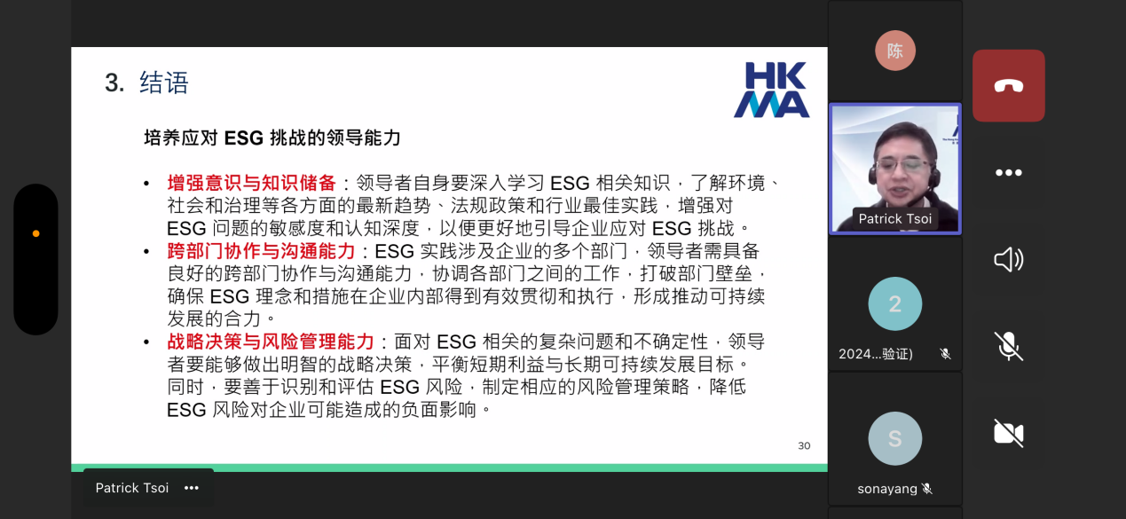蔡曉青博士线上开讲,为beat365在线体育官网登录入口管理学院学生解读ESG战略与框架