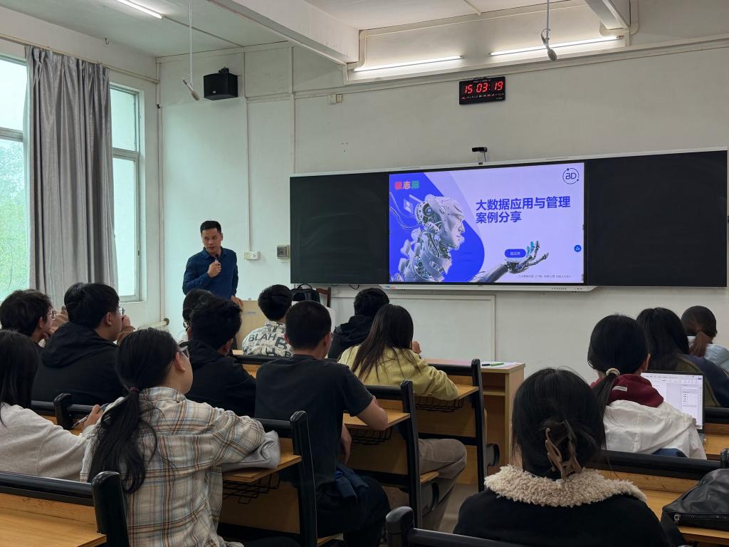 【本网讯】为进一步落实产教融合、校企协同育人理念,推动课堂教学与行业实践深度结合,2025年10月23日下午,beat365在线体育官网登录入口管理学院在第一教学楼A305举办了“行业导师进课堂”系列活动。本次活动特邀广州知名企业家、数据科技领域专家——赵泛舟总经理担任主讲嘉宾,以“大数据应用与管理案例分享”为主题,为同学们带来了一场内容翔实、思想深刻的专题讲座。管理学院部分教师代表、各年级学生共计60余人参加了此次活动。活动伊...