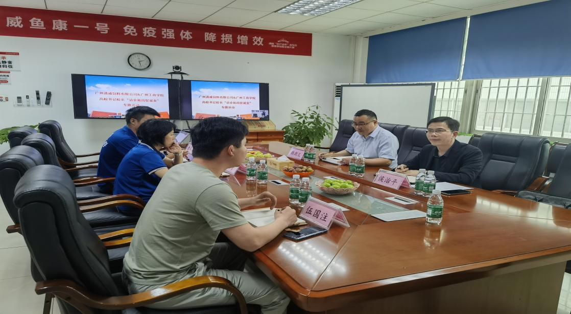 在座谈会上,15级工商管理毕业生伍国注校友现为通威公司区域经理,他分享自身的职业发展历程和成功经验并为母校今天的发展成就倍感自豪。企业方详细介绍了公司的发展现状与未来规划,并就用人需求和校企合作等方面问题畅谈了企业的想法和建议。专业负责人侯治平教授也介绍了学校和专业的基本情况,表示希望以此次访企拓岗专项行动为契机,探索学校与企业构建长效合作机制,持续深化人才培养、实习就业、产教融合等领域深度合作。