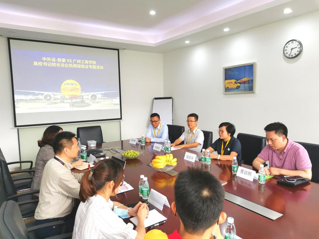 【本网讯】2022年5月25日,学校董事办主任陆志丹带领管理学院院长乔鹏亮、管理学院副院长邹剑峰、学校教师发展中心主任教务处副处长曹远明、管理学院办公室主任陈海松一行五人到中外运-敦豪广东分公司开展“访企拓岗促就业”专项活动,受到公司代表的热情接待。