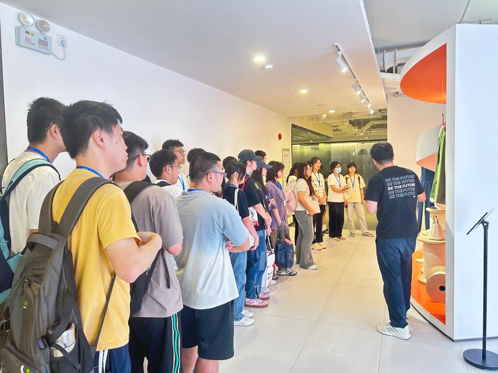 讲座结束后,师生一行在吴老师的带领下深入希音参观。企业文化墙以全息投影技术呈现企业从南京初创到布局全球的发展脉络,从自动化分拣系统的高效运作到“柔性供应链”的动态调度,从环保包装材料的创新应用到大数据驱动的库存管理,企业真实场景让课本知识跃然眼前。吴老师结合现场设备与流程,生动讲解了希音如何通过数字化手段实现“小单快反”的供应链模式,同学们边听边记录,不时驻足观察设备细节,纷纷表示“理论与实践的结合让专业认知更立体”。
