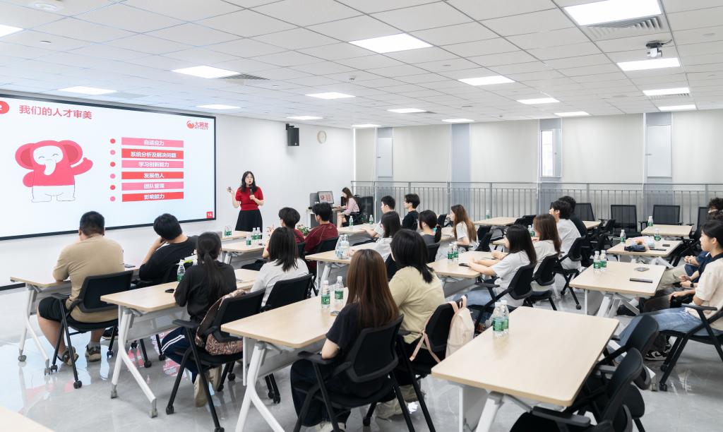 在互动环节,李娟经理以“看见你,在一起”为主题,与学生探讨了职场中的仁慈与善良。她表示:“真诚愉快的奋斗和鼓舞人心的团队文化,能让每个人活出自己的光彩。”学生们深受启发,纷纷就职业规划、实习机会等问题与李娟女士交流,现场氛围热烈。