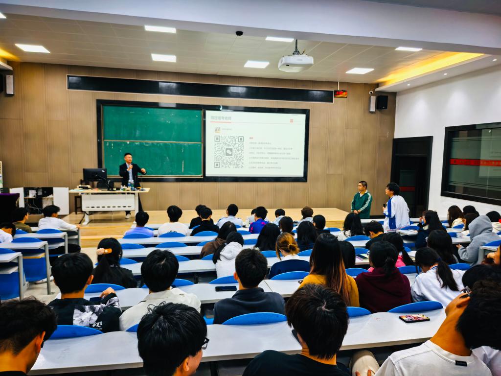 【本网讯】2025年12月11日晚7时在三水校区第一实验楼C204大教室,我们管理学院大数据管理与应用专业成功举办了一场主题为“从大一预见未来:商科生的规划与成长攻略”的专题讲座,参加本次的讲座的为大一大数据管理与应用专业的130名学生。本次活动旨在帮助大一新生尽早树立学业与职业规划意识,明确发展方向,掌握成长路径,激发学习动力与行动能力。讲座内容丰富、贴近实际,为同学们描绘了一幅清晰的专业发展蓝图,现场反响热烈。