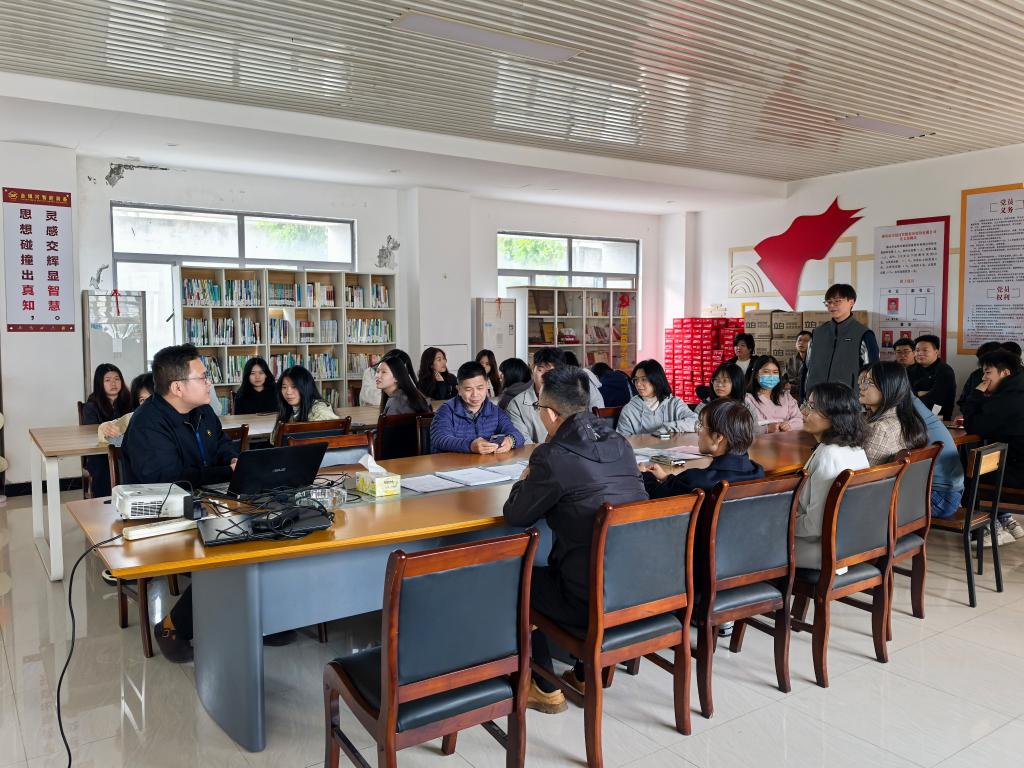 随后进行的第二环节,活动场地被转移至公司会议室。公司招聘主管为同学们带来了一场精彩的专题讲座。主管首先系统介绍了金银河公司的发展历程、核心业务、技术优势以及在新能源智能装备领域的战略布局与突出成就。结合全球能源转型趋势,主管深入浅出地分析了新能源产业链的发展现状与未来前景,帮助同学们把握时代脉搏,理解新兴产业动态。