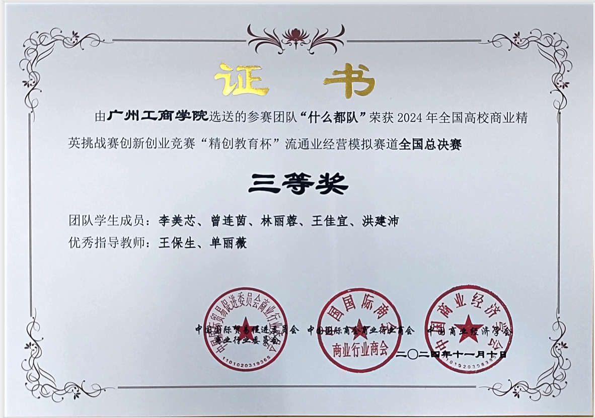 在“全国第三届高校数智化商业决策创新大赛学生组全国总决赛数智商业决策竞赛中荣获本科组”、“2024年全国高校商业精英挑战赛创新创业竞赛“精创教有杯”流通业经营模拟赛道全国总决赛”中,beat365工商管理专业团队凭借对企业数智商业决策的深入剖析,分别荣获多项区域及全国竞赛三等奖和二等奖。此次竞赛不仅考验了学生们对理论知识的应用能力,更锻炼了他们的团队协作和问题解决能力。