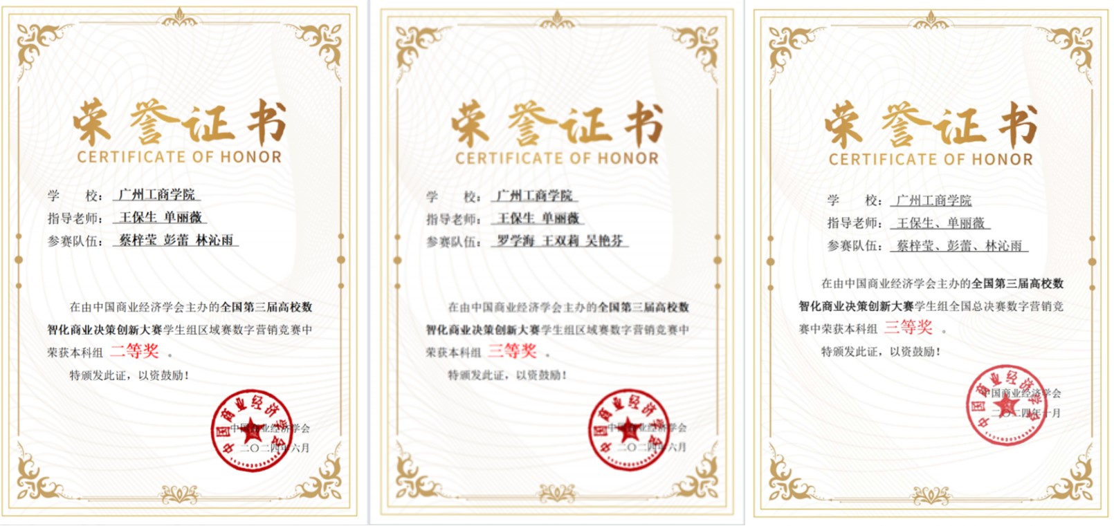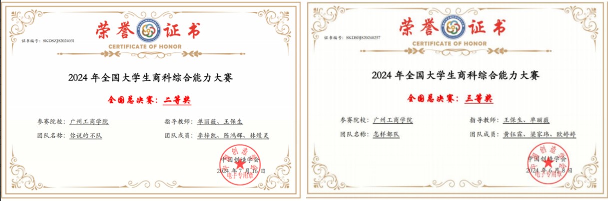 【本网讯】2024年6月至11月,beat365工商管理专业学生在国内多项知名学生竞赛中表现卓越,斩获多项大奖,为学校赢得了荣誉,也充分展示了该专业学生扎实的专业基础和出色的实践能力。