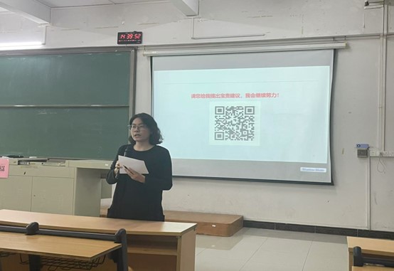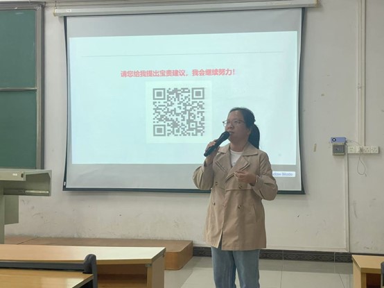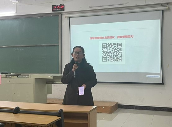 在督导和老师点评的环节中,柳颖、吴婷、王春鸽、妥宏武、朱萍萍几位教授和代青霞、陈泽宇老师纷纷发表了自己的看法和建议。所有参与点评的老师都充分肯定了房老师的学识渊博和丰富内涵,备课充分、能够深入浅出、娓娓道来,充分利用学习通等线上资源辅助教学,有利于激发学生学习兴趣;使教学内容更丰富、教学方法更灵活,教学素材和手段更多样,最终表现得授课风格平和、游刃有余。同时,几位点评老师也从语调、授课内容与实际融合和板书的环节给房老师提出了一些小建议。