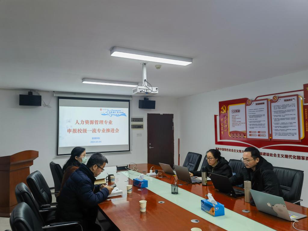 【本网讯】2024年3月4日星期一上午,管理学院召开人力资源管理专业申报校级一流专业推进会,乔鹏亮院长、梁春树副院长、人力资源管理专业王光辉主任、学科带头人妥宏武博士、吴泽雄副主任等人参会。