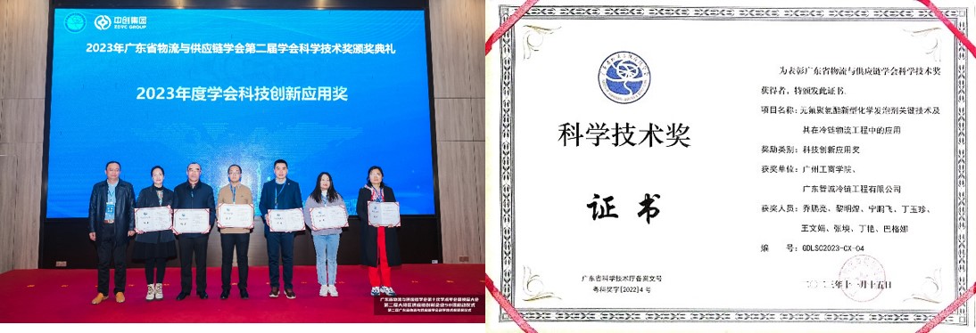 本校与广东智诚冷链工程有限公司合作的项目《无氟聚氨酯新型化学发泡剂关键技术及其在冷链物流工程中的应用》荣获了广东省物流与供应链学会“科技创新应用奖”。