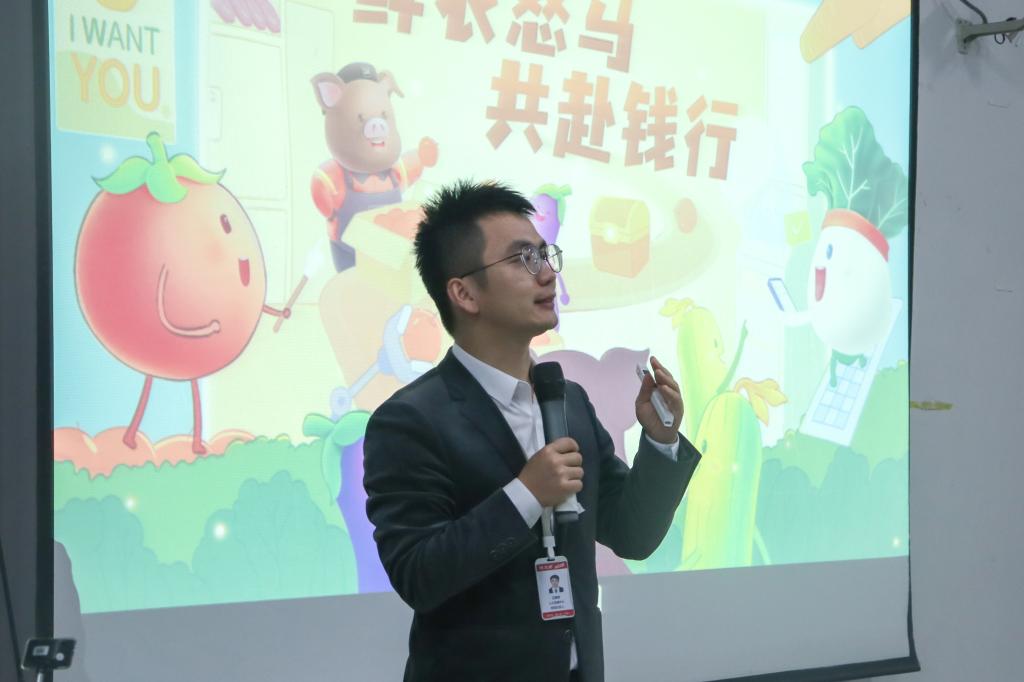 宣讲会开始,钱大妈公司负责人简单讲述了钱大妈企业经营范围并以视频的形式向在座的同学们展示了该公司的企业形象,通过视频让大家简单地了解到钱大妈。