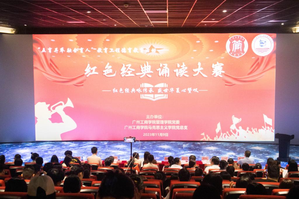 【本网讯】为加深学生对中国共产党光辉历史和伟大精神的理解和认知,增强学生爱党爱国情怀,2023年11月9日在三水校区学生活动中心影视厅,管理学院党委与马克思主义学院党总支联合举办“五育并举、融合育人”教育工程德育教育活动——红色经典咏传承·盛世华夏心赞叹诵读大赛。马克思主义学院党总支书记、常务副院长周静,管理学院党委副书记、副院长赵小锋,马克思主义学院党总支副书记、院长助理谭丽婷,学校党委专职组织员何艳娴,管理学院学工办主任姚舜及全体辅导员老师出席本次大赛。