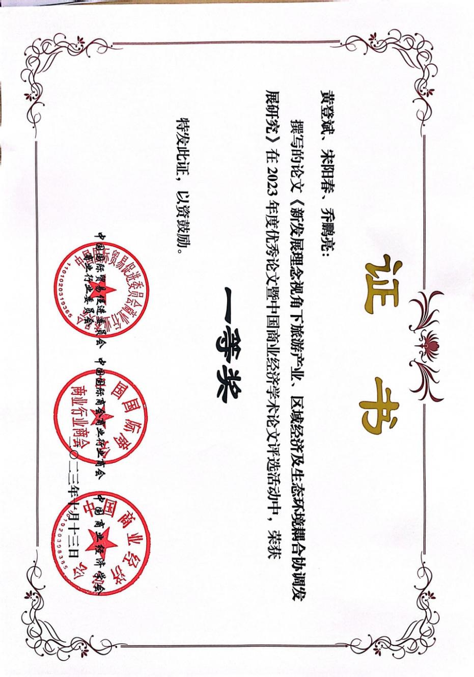 【本网讯】近日,中国国际贸易促进委员会商业行业委员会、中国国际商会商业行业商会、中国商业经济学会发布了《关于公布2023年度优秀论文暨中国商业经济学术论文评选结果的通知》,我院《新发展理念视角下旅游产业、区域经济及生态环境耦合协调发展研究》荣获一等奖。