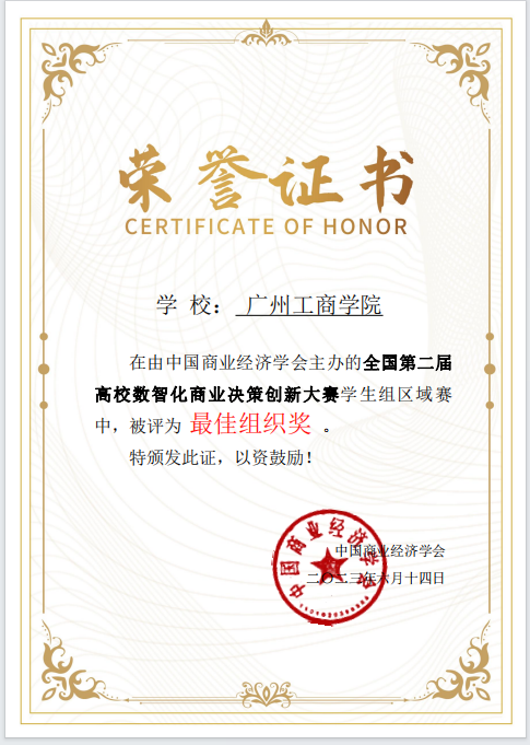 本次大赛历经6个月完成,学院组织45支队伍参赛,参赛学生123名,参赛教师及辅导教师13名,获得奖项证书144项,包含省级一、二、三等奖,全国一、二、三等奖,123名学生均获得中国商业经济学会颁发的数智通用技术能力初级/中级证书。赛事的参与为管理学院乃至大数据管理课程组赢取了丰厚的成果,为“岗、赛、课、证”融合、数智与课程融合、产教融合等打下了坚实基础。