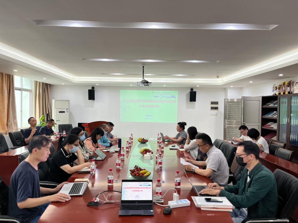 2023年5月10日下午2:30分,管理学院在院部楼612会议室开展“高质量科研项目申报分享交流活动”第三期活动,邀请了华南理工大学谢笑珍教授作主题为“教育科学研究项目申报”的专家讲座。管理学院邹剑峰副院长以及有意向申报教育科研项目的老师们出席了本次专家讲座和交流活动。