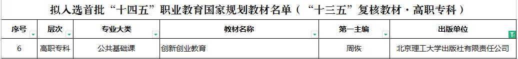 陈伟老师参编的高职专科层次教材《创新创业教育》入选序号