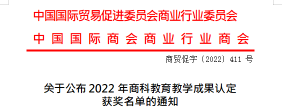 【本网讯】 近日,中国国际贸易促进委员会商业行业委员会、中国国际商会商业行业商会发布了《关于公布2022 年商科教育教学成果认定获奖名单的通知》,我院《基于全生命周期应用型民办高校创业人才培养模式探索》荣获一等奖;《知识传授、技能培养与价值引领-“统计分析软件运用”课程的思政建设与创新》荣获二等奖。