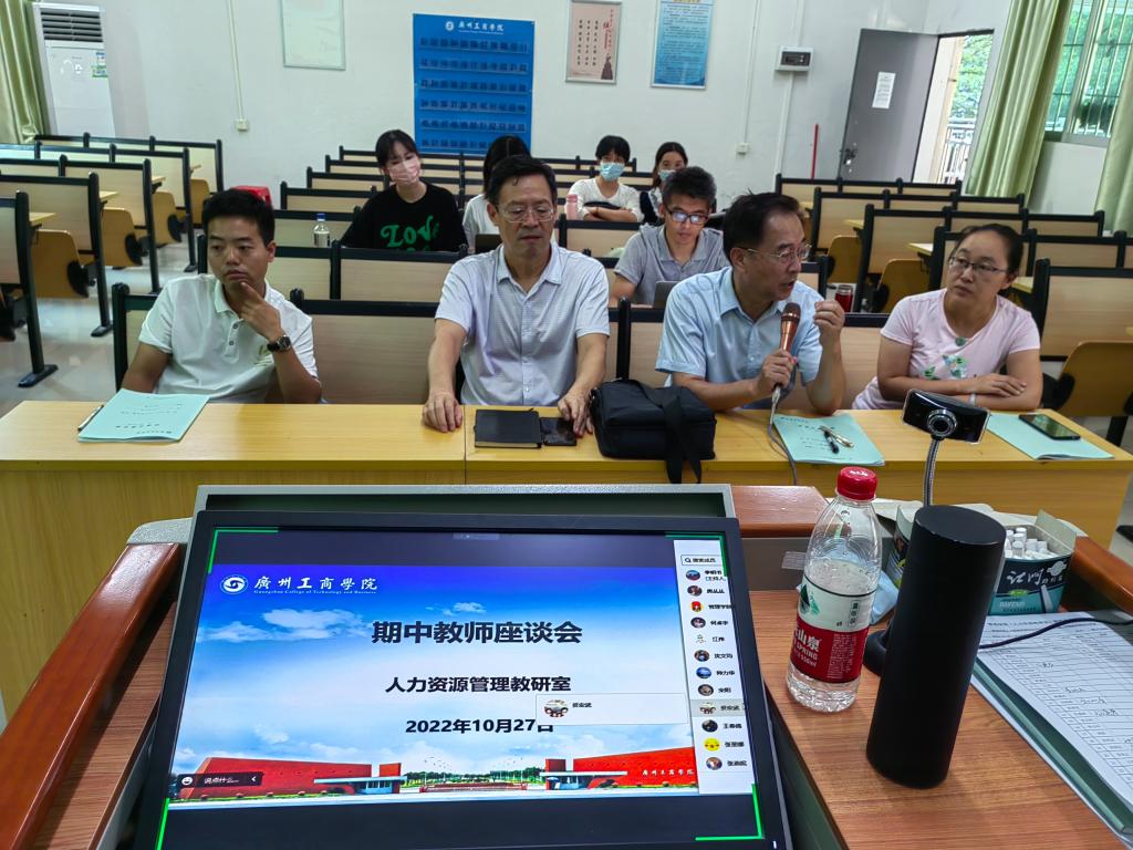 【本网讯】2022年10月27日下午15:40-17:15,人力资源管理教研室在教Ⅱ- A203组织开展了期中教师座谈会。教研室主任王光辉主持会议,人力资源管理教研室全体教师参加活动。