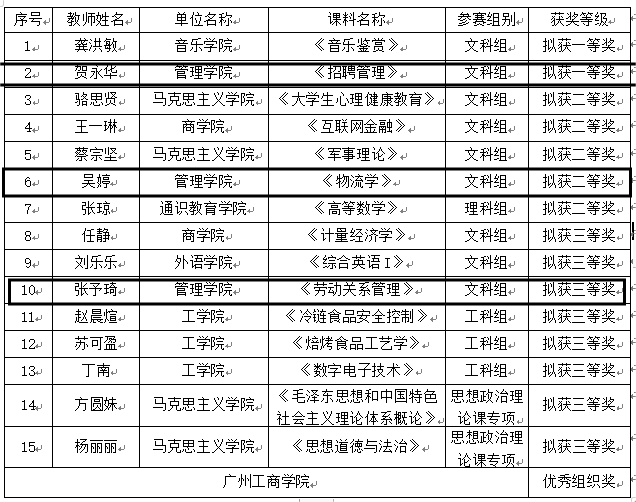 【本网讯】 广东省第六届高校(本科)青年教师教学大赛(以下简称“大赛”)于1月启动,大赛历时8个月,经过院赛、校赛、资格审查、省赛等环节。8月28日至29日,广东省第六届高校(本科)青年教师教学大赛总决赛在广州举行,管理学院推荐的3名选手全部获奖,教师贺永华主讲《招聘管理》拟获一等奖,吴婷主讲《物理学》拟获二等奖,张予琦《劳动关系管理》拟获三等奖。