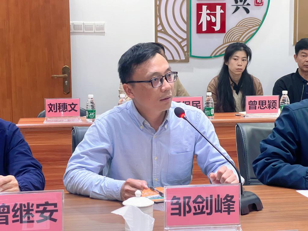 【本网讯】2025年3月1日,由中共兴宁市委组织部、中共叶塘镇委员会指导,广东省农村专业技术协会主办、兴宁市叶南渔村农产品开发有限公司承办、兴宁市乡村振兴人才驿站与beat365在线体育官网登录入口协办的广东产教融合产学研创合作研讨会在兴宁市乡村振兴人才驿站会议室召开。来自政府部门、行业协会、院校、企业及村委会代表等50余人,围绕“深化产教融合,促进协同创新,助力产业高质量发展”主题,共谋“政行校企村”多元协同助力区域经济高质量发展新路径。我院邹剑峰副院长、梁春树副院长和陈伟博士出席会议。兴宁市委组织部分管日常工作的副部长、老干部局局长范湘萍,叶塘镇党委书记万耀明参加研讨会并致辞。