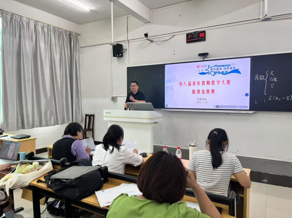 本次教学竞赛遵循公平、公开、公正的原则,从课程教学大纲、课堂教学设计、课堂教学节段PPT、课堂教学、教学反思等六个方面进行线上评审和现场评审。学院成立了教学竞赛领导小组,并由管理学院教学建设分委员会以及课堂建设分委员会的25位教师组成评审团队。经过教研室的推荐,最终廖艳等42名青年教师参与了此次竞赛。在比赛过程中,各参赛教师凭借其扎实的专业知识、多样化的教学技能以及熟练的课堂驾驭能力,展现了卓越的教学水平和课堂风采。