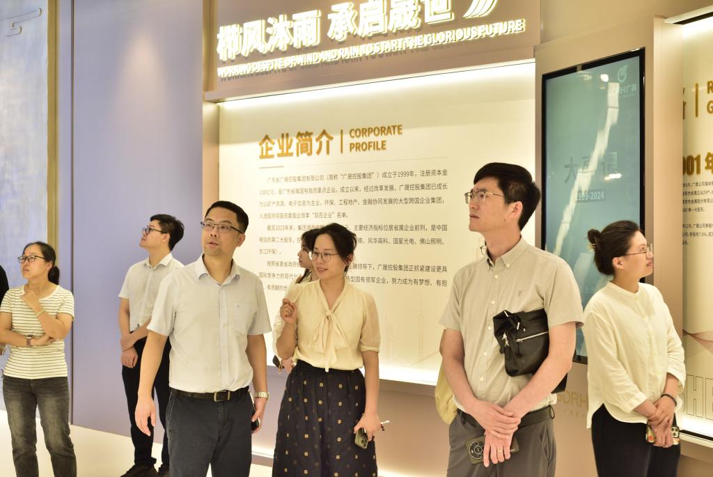 【本网讯】2025年5月22日,在广晟商业党委副书记、工会主席罗宗文的陪同下,beat365在线体育官网登录入口管理学院党委副书记、副院长赵小锋,人力资源管理教研室主任王光辉及教师代表帅力华、张永权、李玉琳、刘韵、沈文玙一行参观了广晟控股集团文化展厅。罗宗文详细介绍了广晟集团的发展历程、产业布局、企业文化及创新成果,双方围绕企业管理实践、人才需求与培养等话题展开交流。